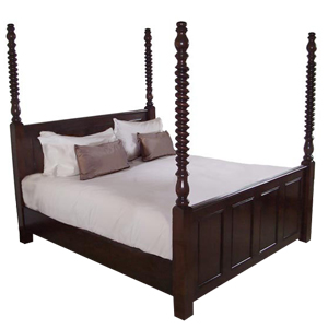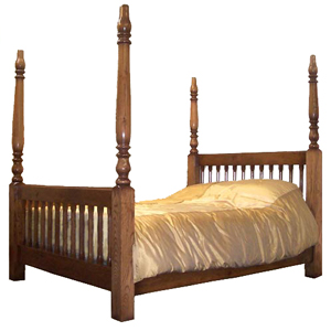 The pencil bed, or pencil post bed is normally made with four long posts, finished with a finial turning at the top. We can make these to your requirements. Please look through the various designs of the styles of a pencil bed, and if there are posts from one that you like, we can make a different headboard for it. The Pencil Post Beds offer the feeling of a traditional four poster bed, without the heaviness that can come with a canopy roof on the top. We offer the turned bed post shown below, as standard, on the pencil post bed but have made many variations to suit each customer’s request. The foot of the bed can be kept as a rail, rather than a board, and the size of the bed posts can be reduced to give a very elegant pencil bed.